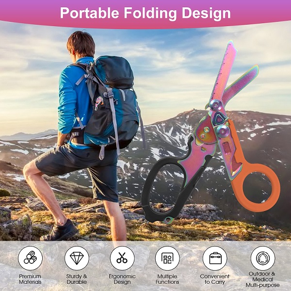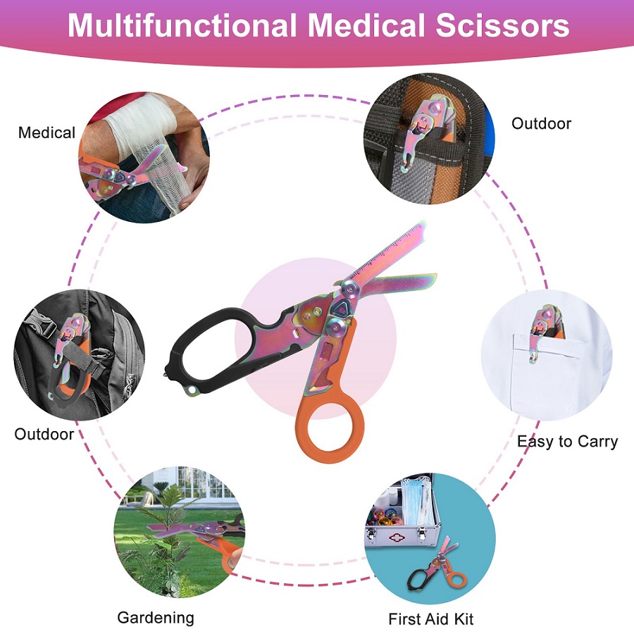 10*20.7cm/8.1*3.9inch6-in-1 Multi-Function Rescue Tool:Multifunctional medical scissors
